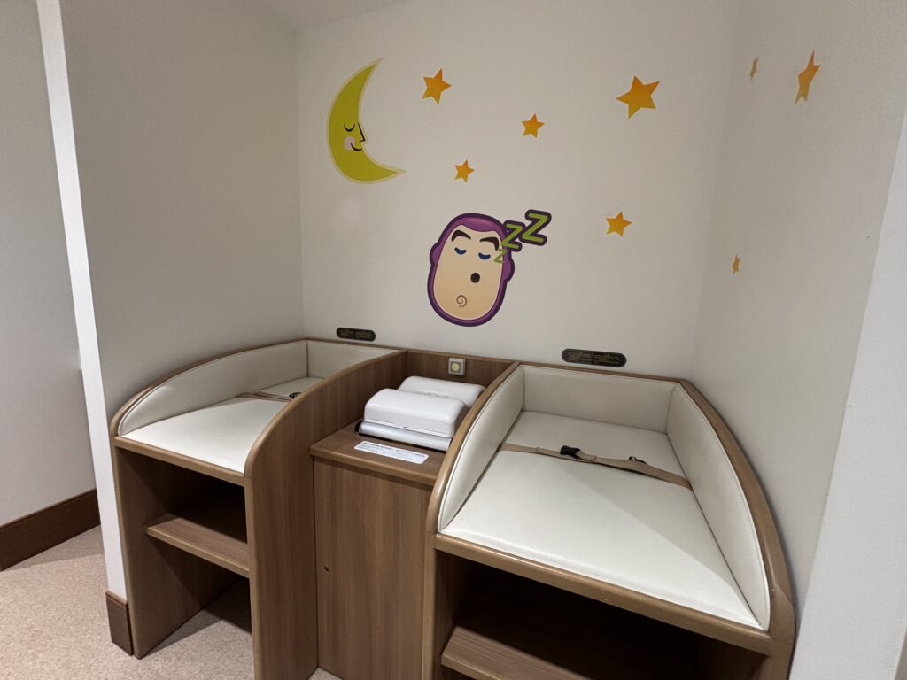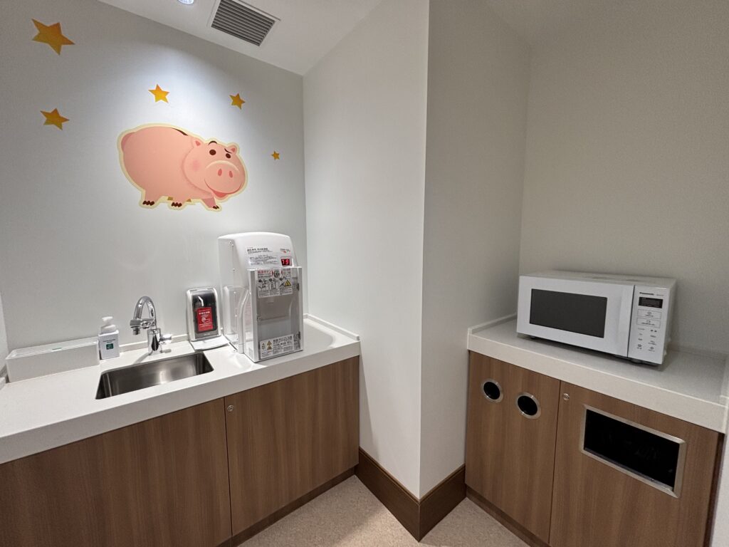 ホテル1階にベビールームがあり、授乳室やおむつ台、調乳用のお湯や電子レンジがあります。離乳食の温めに利用できるので安心です。