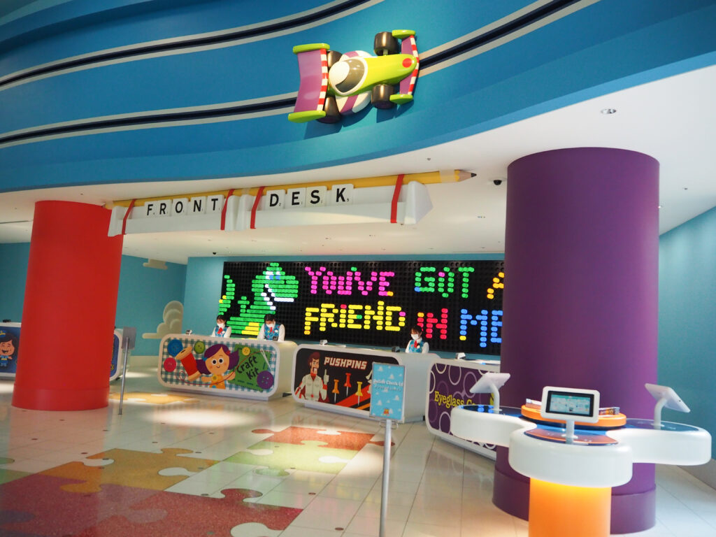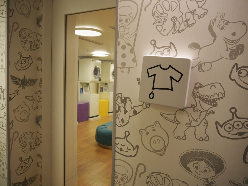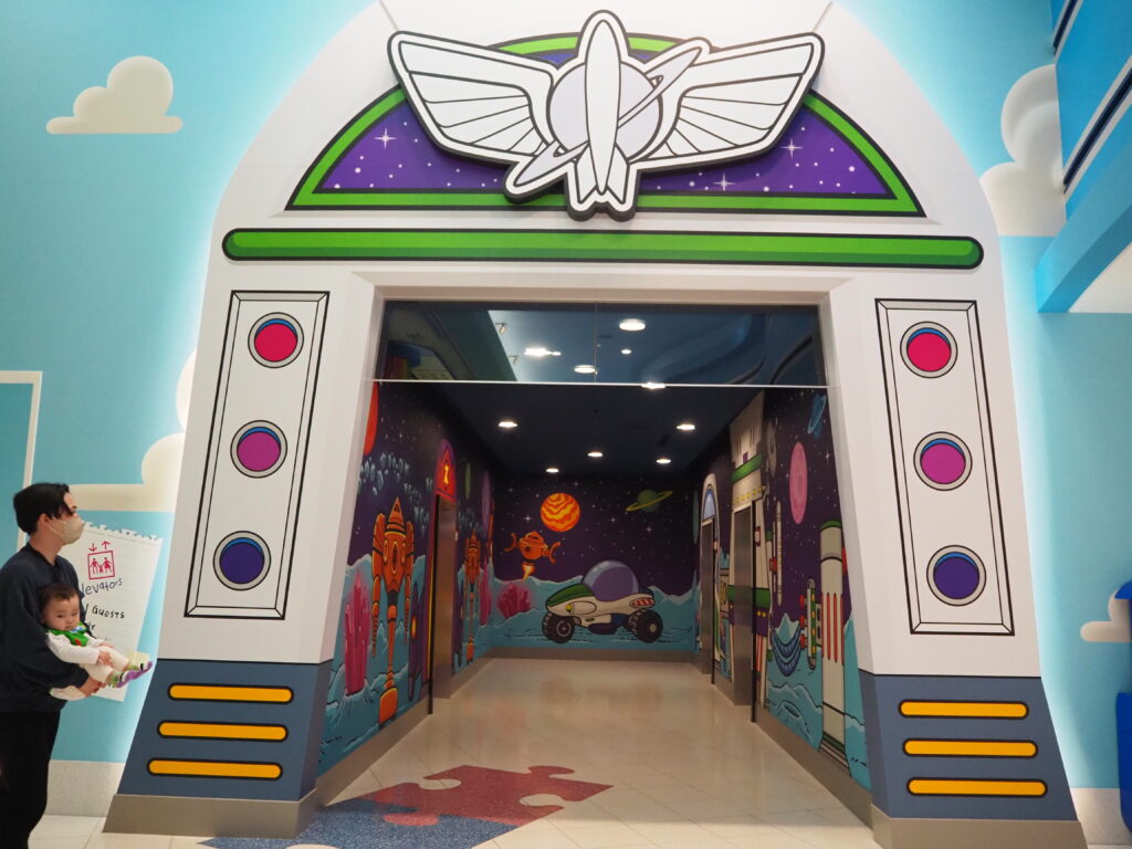 ホテルの中を散策。エレベーターはバズとウッディの仕様があり、今回はバズ側のお部屋でした。エレベーターの声はバズが案内してくれます!