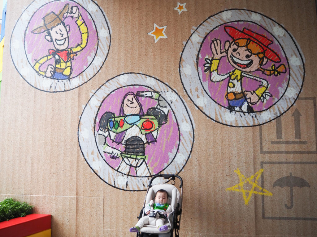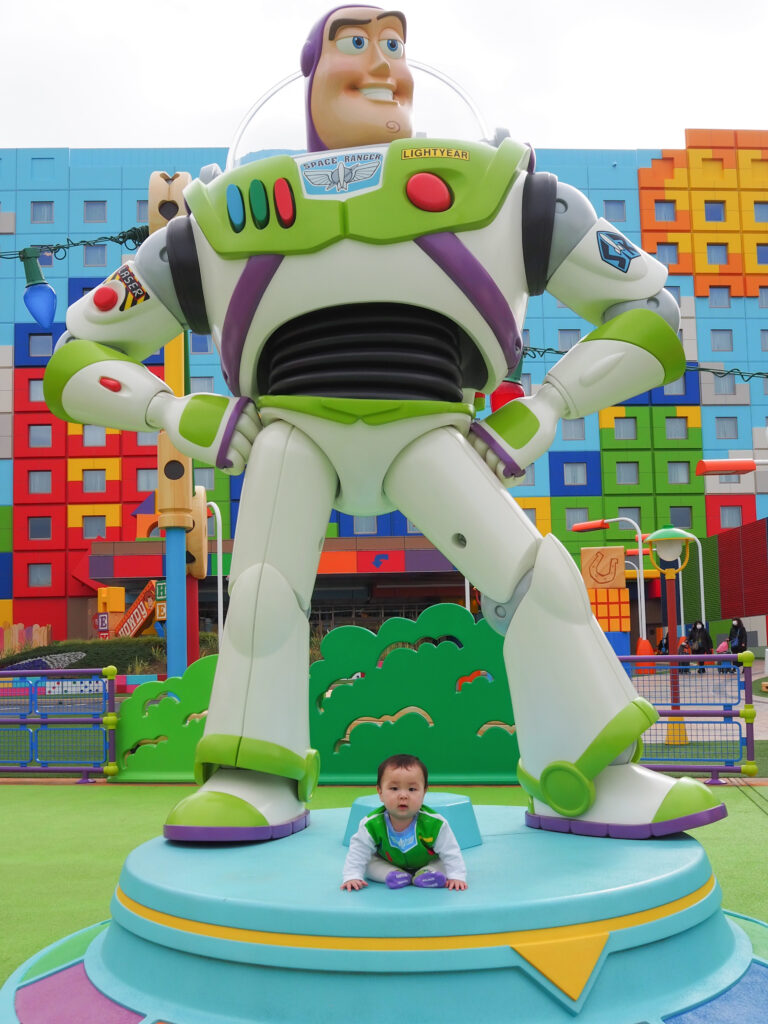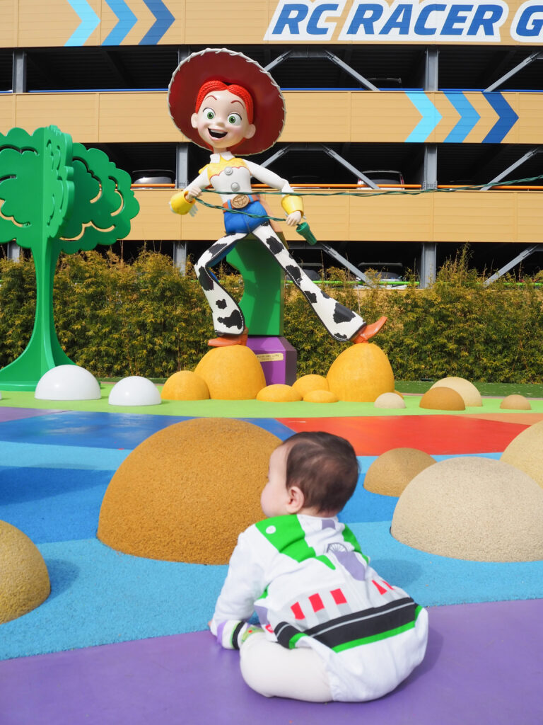 ここにはバズライトイヤーやジェシーなどがいて、フォトスポットだらけ!息子もバズになってたくさん写真を撮りました!