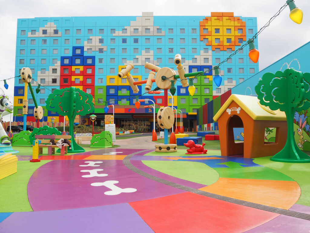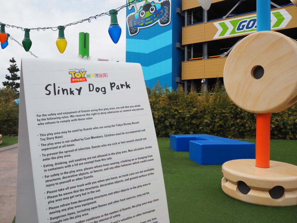 ホテルの敷地に入っていくと、可愛い過ぎるおもちゃの世界!まず初めにスリンキードッグパークがあります!(ここはホテル宿泊者でなくとも入ることができます。)